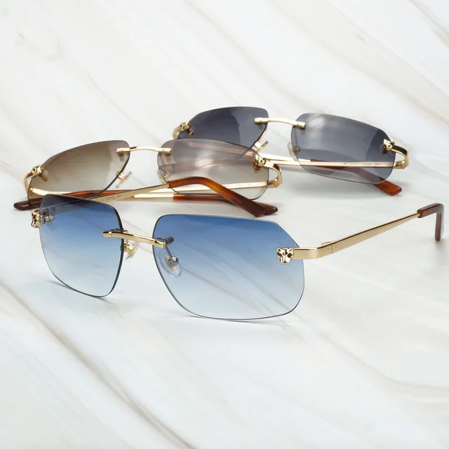 Luxury Rimless Sun Glasses Men Women Sunglasses for Beauty Panther Head Glasses Frame for Decoration Gafas De Sol for Travelling
